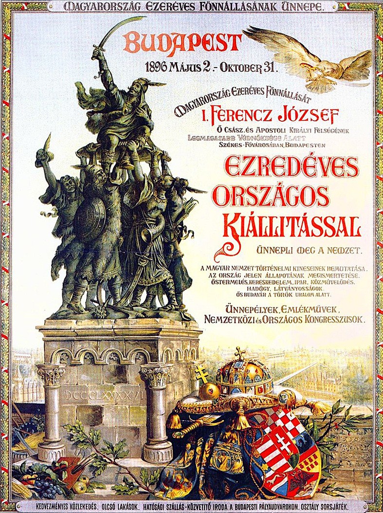 Az ünnepségek egyik központi elemének, a városligeti (budapesti) kiállításnak a hivatalos plakátja
