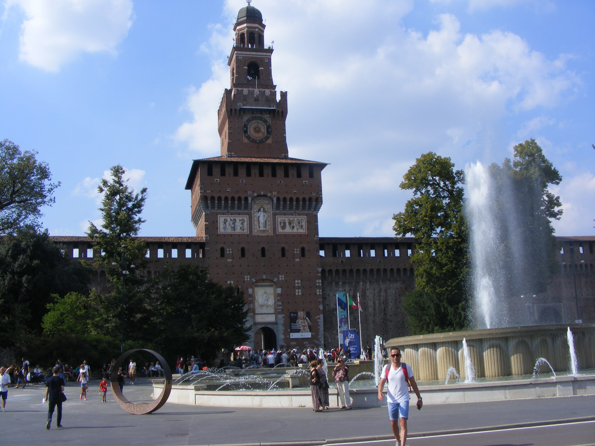 Folytatjuk utunkat a Sforza-kastély irányába, közben modern villamosok, de több, 95 évnél is idősebb villamos zötyög el mellettünk. A borítás nélküli fapados villamosmatuzsálemek nem nosztalgiajáratok, szerves részei a város tömegközlekedésének a múlt század első évtizedeitől (1928-1935). Napi rendszeres karbantartásuknak köszönhetően ma is üzemképesek.