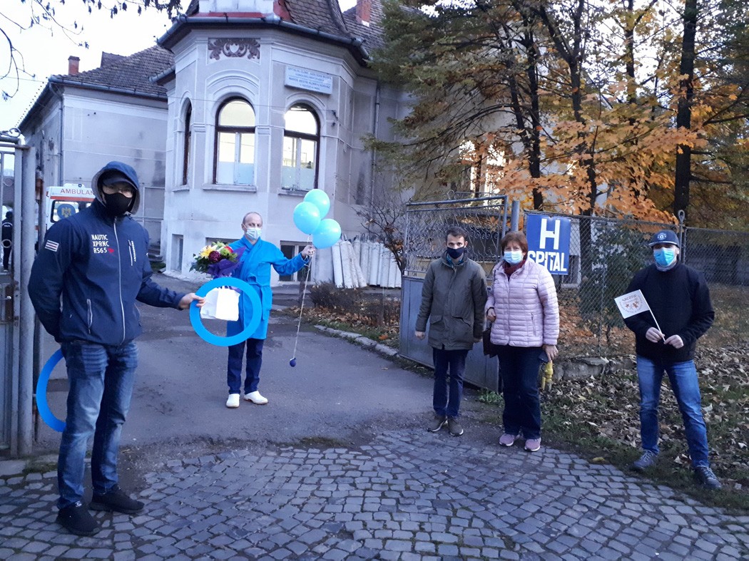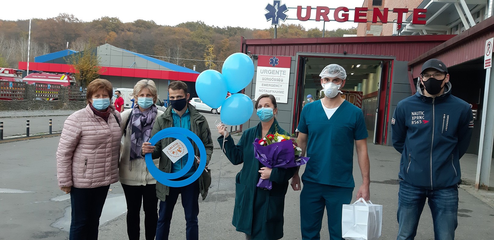 A jelenlegi járványhelyzetben óriási nyomás nehezedik az egészségügyi ellátórendszerre, ezért az egyesület a cukorbetegség világnapján egy kis figyelmességgel szeretett volna köszönetet mondani azoknak, akik az élvonalban állnak ebben a harcban. A Marosvásárhelyi Polgármesteri Hivatal, valamint egy cukrászda támogatásával süteménnyel és virágcsokorral kedveskedtek azoknak az egészségügyi dolgozóknak, akik koronavírussal fertőzött betegeket látnak el. Az egyesület önkéntesei szombaton a két marosvásárhelyi fertőzőklinika, a rohammentő szolgálat, valamint az orvosi egyetem udvarán lévő sportcsarnokban kialakított háttérkórház dolgozóit lepték meg egy kis ajándékkal. Ugyanakkor november 14-én este a Marosvásárhelyi Polgármesteri Hivatal épületét kék színnel világították meg a diabétesz világnapja alkalmából.