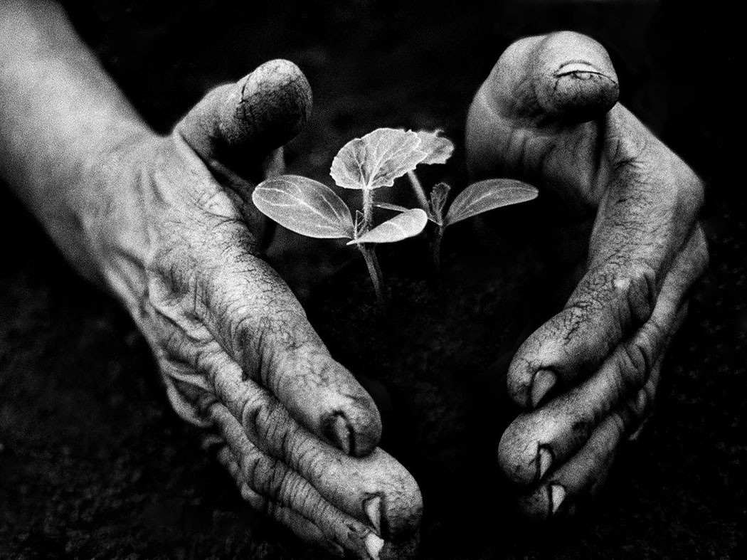 – Azt 1978-ban készítettem egy tarnamérai idős kertész emberről. Eredetileg a lapom megbízásából egy képriportként indult a dolog, de amint a riportsorozat elemeit kezdtem leépíteni, és tisztult az eszmei üzenet, ez a kép önállósult, külön életre kelt, sőt már nem is a Heves megyei kertész bácsi és a keze lett a lényeg, hanem az ember és a természet közti kapcsolat, amely az évszázadok során megőrződött, napjainkra világszinten meg is romlott. Megbomlott a harmónia, sokunkban viszont él még a teremtés vágya és felelőssége. Ahogy ez a két kidolgozott, öreg kéz védi, óvja a palántát, az a féltés, ami a látványból kisugárzik, az a teremtő szándék és gesztus szimbóluma lehet.