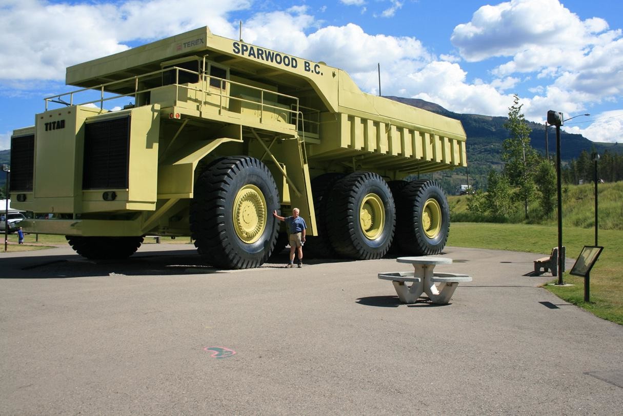Sparwood, egy aránylag kis település, mintegy 3600 lakossal, fontos szerepet tölt be a szénbányászatban. Egyik érdekessége a Terex Titan autó, mely 1998-ig a világ legnagyobb autója volt. 16 hengere 3300 LE-t fejtett ki, és 235 t súlyával 320 t rakományt tudott egyszerre elszállítani. A kiállított példány hatalmas, még a kereke feléig is alig érek fel. Nem szerettem volna egy ilyennel karambolozni. A góliátkocsin kívül sok látnivaló nincs a városban, megiszunk egy feketét, és indulunk is tovább. Utunk délre fordul, az Elk folyó mellett haladunk, s miután a Kootenay folyóval találkozunk, északnyugatra fordulunk. Nemsokára elérjük a Columbia- illetve Windermere-tavat. A táj csodás.