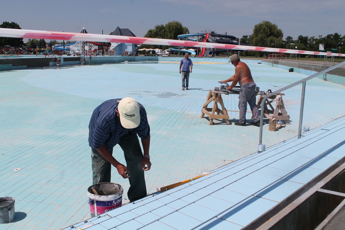 A közbeszerzés elhúzódása miatt idén későn tudták elkezdeni a medencék felújítását – fejtette ki érdeklődésünkre Ioan Cârcu, a Víkendtelep igazgatója. Mint mondta, az utóbbi években az idénynyitás előtt zömében saját alkalmazottaikkal kisebb javításokat végeztek, például pótolták a leesett csempéket. Idén azonban egy nagyszabású javításra került sor, felújítják a medencéket, többek között kicserélik a csempéket, újrafestették a gyerekmedencében lévő csúszdát. A munkálatok még zajlanak, emiatt egyes medencéket még nem sikerült feltölteni.
