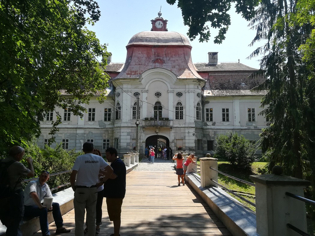 A gernyeszegi történelmi-kulturális napok csütörtöki és pénteki, hatványozottan kulturális jellegű eseménysorozata után szombat délelőtt már álltak a sátrak és lacikonyhák a központi parkban felállított színpad előtt, de az eseménysorozat kulturális része ekkor sem hiányzott: a gyönyörű időben délelőtt interaktív gyerekprogramok zajlottak a látogatók által teljesen birtokba vett kastélyparkban, míg a kastélyban a Teleki család tagjai által vezetett túrákon vehettek részt az érdeklődők, kora délután pedig vezetett látogatás indult a Gernyeszeg határában, egy magaslaton fekvő Teleki-kriptába, valamint a helyi ortodox és református templomokba. Az utóbbi túra is nagy érdeklődésnek örvendett, a résztvevőket iskolabusz szállította a helyszínekre, amelyeket Kálmán Attila történész a tőle megszokott dinamikus, átfogó, közérthető és humorban sem szűkölködő módon mutatott be. A rengeteg elhangzott információból megtudhattuk például, hogy a grófi család mely történelmi jelentőségű, kiemelkedően fontos tagjait rejti a piramis alakú homlokzattal rendelkező sírbolt, hogy melyik Teleki gróf festett két képet a helyi ortodox közösség számára, és hogy a nyolcszáz éves református templomban lévő szarkofág valóban II. Rákóczi Ferencnek készült-e. A hangulatos, valóban sok, nem közismert információt nyújtó minikirándulás után a délutáni kastélybemutatón vettünk részt, amelyet ekkor a Belgiumban született és ott felnőtt Teleki Tibor, a nagy múltú főnemesi család legifjabb leszármazottja vezetett. Fiatal túravezetőnk enyhe nyugati akcentussal, de tökéletes magyarsággal, nagy-nagy szeretettel beszélt a hathektárnyi kertről, a benne található több évszázados fákról (melyek jó része még az eredeti angolpark részét képezte), a család történetéről és végül a kastélyról, amelynek felső szintjét jártuk be. Mint mondta, az 1802-ben befejezett kastélynak egyrészt jót tett, hogy az államosítás után preventórium, majd gyerekszanatórium volt benne, mert aránylag épen megmaradt (tetőzete például eredeti!), másrészt az éppen ez ügyben alkalmazott módosítások jelentős kárt is tettek benne (a lebetonozott udvar miatt például nem szellőzik a pince és romlik az alap). Láthattuk többek között a báltermet, egy, a preventórium idejében szörnyű mesefigurákkal szocreál-fantasy stílben kifestett szobát, és több, korhűen, antik bútorokkal berendezett helyiséget is, megtudhattuk, hogy a kastély helyén egykor vár állott (ezért a vizesárok), hogy az épület ajtai és ablakai is mind eredetiek, és természetesen azt is, hogy a család mely tagjai és mikor lakták a gyönyörű, késő barokk, Grassalkovich-stílusban épült kastélyt. Mint elhangzott, a visszaszerzett épület műemlék, így nemcsak a család, hanem a közösség kincse is, ezért nyáron, naponta 10 és 18 óra között vezetett túrákra jelentkezhet be bárki, az aránylag jó állapota ellenére még sok javításra szoruló kastélyt pedig kulturális központként is fogják működtetni.