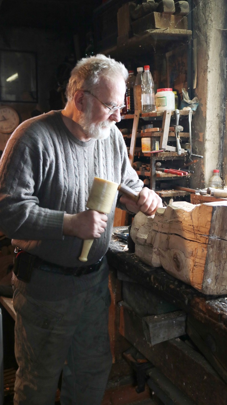 – Megkedveltem a fát is. A faragás gyönyörű munka, nem lehet betelni vele. Készítek vázlatokat, de a végleges döntést a fa formája, erezetei adják, sokszor a mondanivaló és a kifejezés tömörebb szolgálatát sugallják.