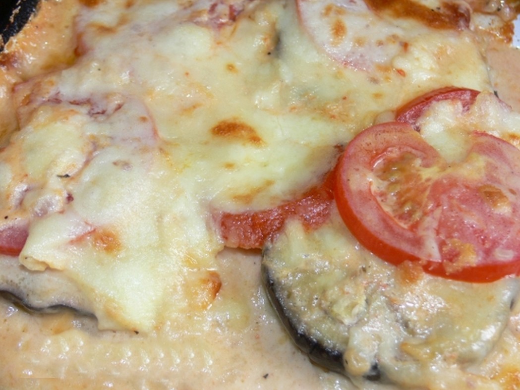 Egy hőálló tálat kikenünk olajjal, megszórjuk zsemlemorzsával, és lerakjuk benne a padlizsánkarikák felét. Ráhelyezzük a 3-4 mm vastag karikákra vágott paradicsomot, ráöntjük a húsos mártás felét, majd megszórjuk a lereszelt sajt felével. Megismételjük a rétegezést a maradék hozzávalókkal, majd 190 fokos sütőbe toljuk, és 20-25 percig sütjük. Melegen-hidegen egyaránt finom étel.