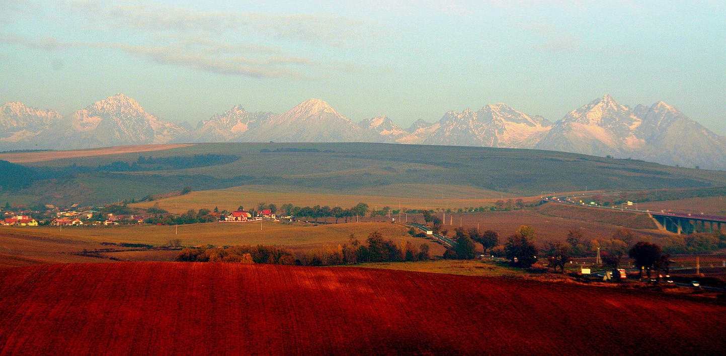 Távolban a Magas-Tátra, alatta felszántott búzaföld