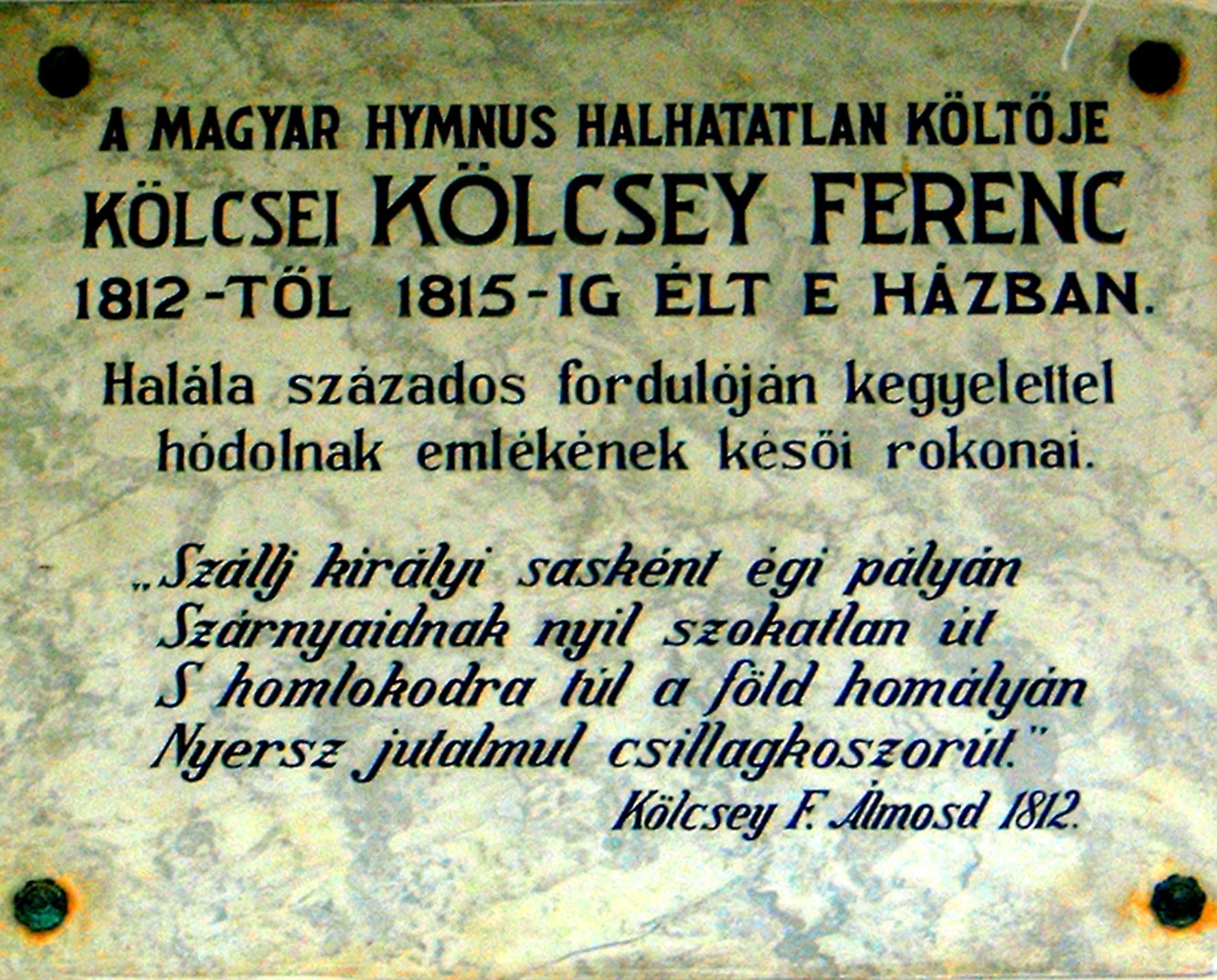 Emléktábla Kölcsey Ferenc álmosdi házának falán