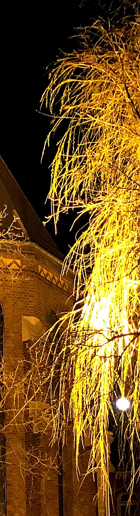 A Hold? Ma napnyugta körül kél csaknem keleten, s fogyva vándorol a nyugati horizont felé. Megzizzenti a még csupasz szomorúfüzet, s a templom faláról elkószáló éjszakai reflektorfényben lassú táncra kelnek a hosszú ágak. Sejdíttetik szőkülésüket.
