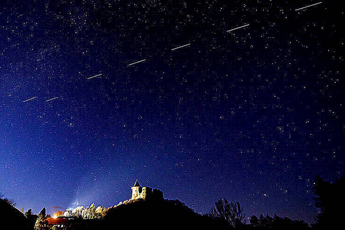 Nincs két hete, hogy május utolsó szombatján különös égi jelenség részese voltam. Bakonybéli kirándulásunk éjszakáján a fejünk fölött, napnyugta után, már éjszaka, a felszikrázó csillagképek alatt libasorban fénypontok vonultak. Jómagam szeretek napnyugta után szabad szemmel műholdak után kutatni az égen. Láttam az elsőt, 1957-ben. S ha szerét ejtem, belebámulok a csillagos égbe bármikor. S a csillagok sokaságát csillagképekbe gyűjtve, szatellitek méltóságos vonulását s hullócsillagok fényjaját temetem szemem karikájába.