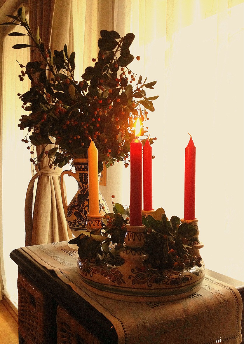 Az adventi koszorú négy gyertyája int minket. Az első arra, hogy Krisztus az, akinek eljöveteléről jövendöltek az ószövetségi próféták. A második arra, hogy Krisztus valóban eljött, megérkezett karácsonykor. A harmadik azt mondja, hogy ő az, akit a mindenkori jelenben naponta várni kell. A negyedik arról szól, hogy Krisztus az, aki a maga idejében eljön ítélni eleveneket és holtakat.