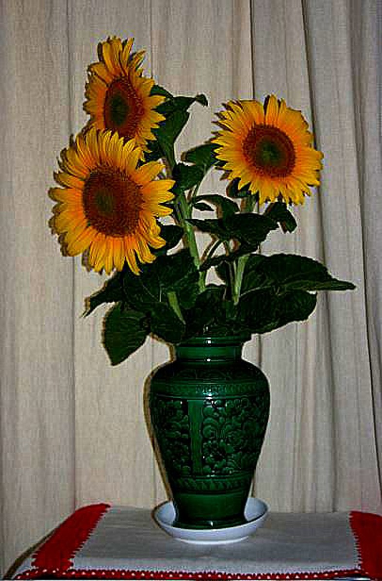 Augusztus derekán járunk. Napraforgók érő tányérjai lassabban fordulnak már a nap felé. A nap már átadta nekik tüzét. Innentől már csak a termés beérlelése a gondjuk. Kálnoky László versnek ajánlása – Strófák Ferenczy Noémi gobelinjeihez – éppen e megszenvedett varázst vetíti a múló idő vásznára: