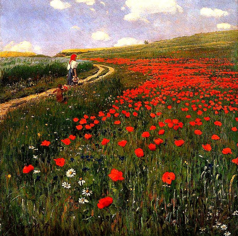 Szinyei Merse Pál: Pipacsos táj – Piros pipacsok és kék virágok