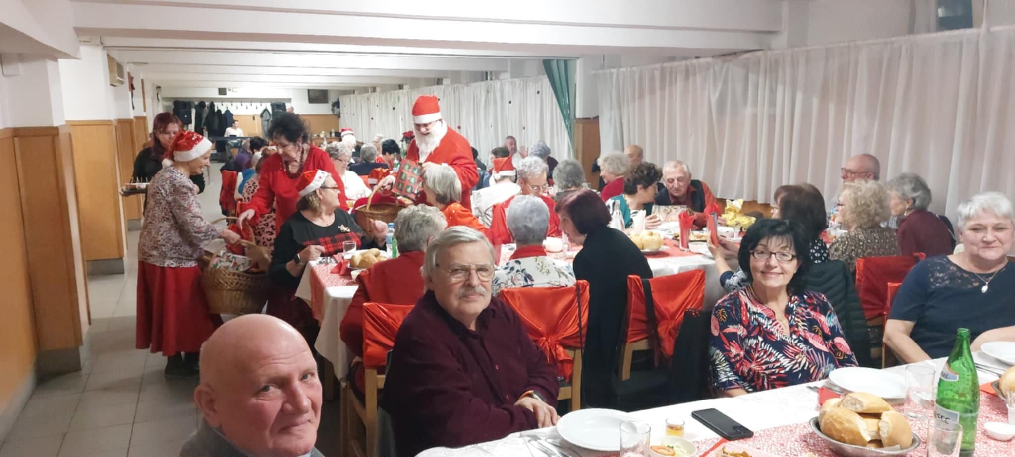 Felszolgálták a finom vacsorát, és megkezdődött a tánc. Hálásan köszönjük klubvezetőnknek a kitűnő szervezést; a felejthetetlen estén a sok egyedül élő idős ember arcára mosolyt varázsolt.
