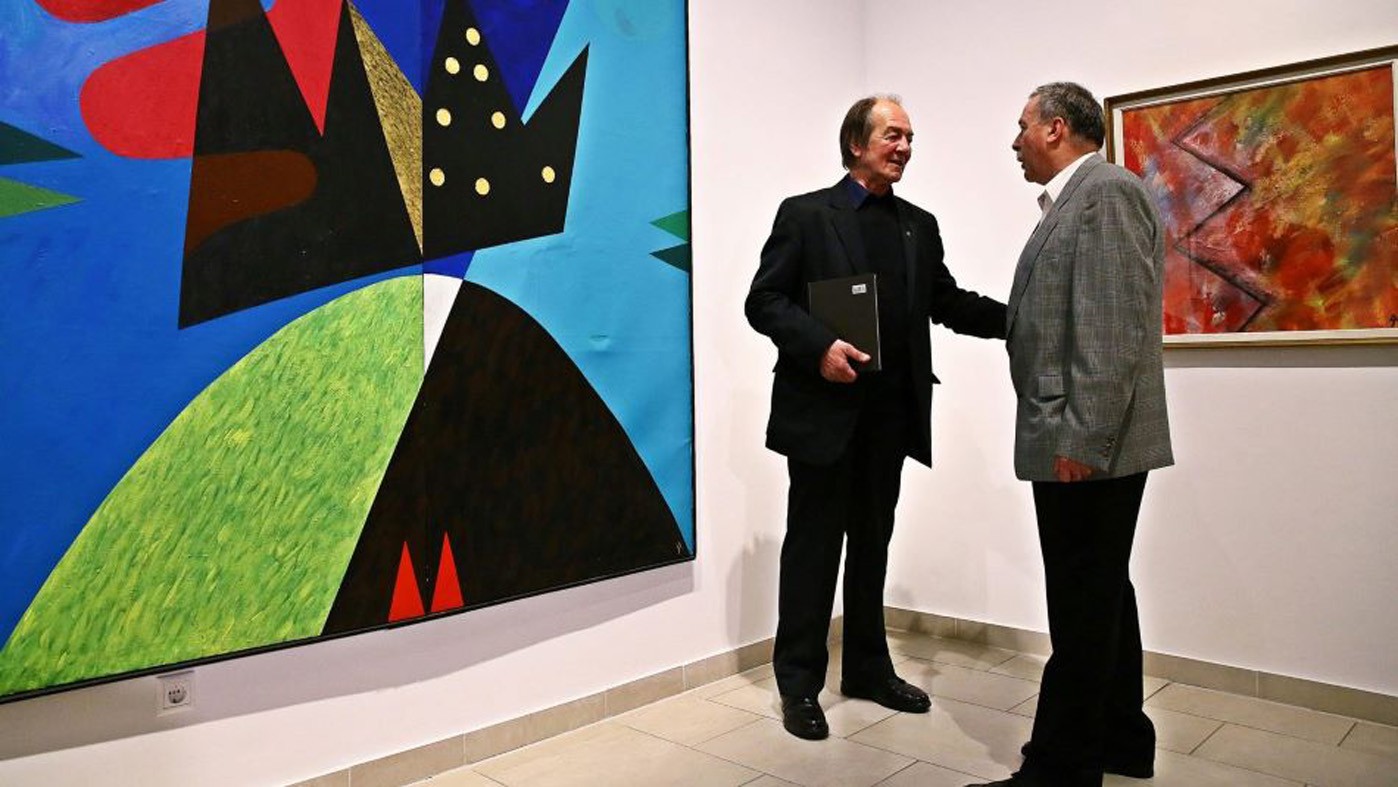 Tárlatnyitón a festő Aknay János és a műgyűjtő Szepessy László (jobbra)