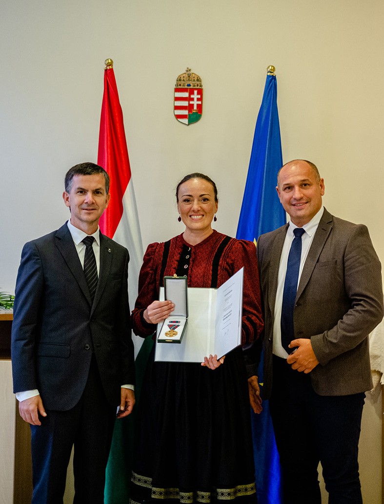 Három Maros megyei személyiség részesült rangos magyar állami kitüntetésben az augusztus 20-i nemzeti ünnep alkalmával, amit Magyarország Csíkszeredai Főkonzulátusán adtak át. A három kitüntetettet egymás után mutatjuk be olvasóinknak. Kásler Magda, a Maros Művészegyüttes vezető táncosa és énekese sokoldalú előadóművészi tevékenységéért, valamint az erdélyi magyar kultúra megőrzése érdekében végzett munkája elismeréseként érdemelte ki a Magyar Arany Érdemkeresztet Áder János köztársasági elnöktől. A kitüntetést Tóth László, Magyarorszság Csíkszeredai Főkonzulátusának főkonzulja adta át.