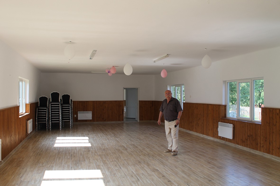 Az új kultúrotthont rendezvényekre, torokra, keresztelőkre, kicsengetésre használják. Csupán az asztalok hiányoznak, a 72 szék már megérkezett – mutatta Szőke András, aki végigvezetett az épületen.