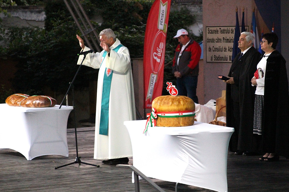 Az óriáskenyereket, amelyeket, akárcsak az előző években, idén is az Eldi pékség készített el, a magyar történelmi egyházak képviselői, Berekméri Melinda, a Marosi Református Egyházmegye főjegyzője, Nagy László unitárius lelkész és Oláh Dénes római katolikus főesperes áldották meg, majd szétosztották a jelenlevők között. A kenyerekért a szervezők nevében Kilyén Ilka műsorvezető köszönetet mondott az Eldi cég vezetőségének, Kabai Elek tulajdonosnak, Kabai Elek Csaba marketingigazgatónak, valamint Kabai János termelési igazgatónak.