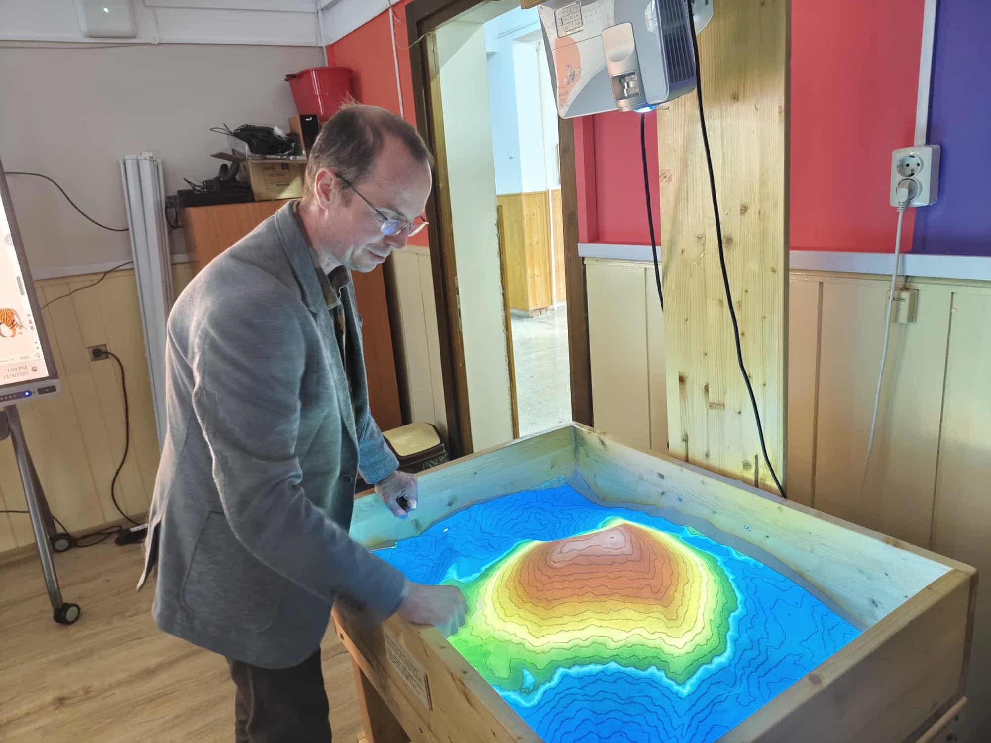 Igyekszünk minden pályázati lehetőséget kiaknázni, hiszen így tudunk építkezni. Egy nyertes projektnek köszönhetően VR-szemüvegeket vásároltunk, amelyeket az oktatási folyamatban hatékonyan használunk. Nincs olyan tantárgy, amit ne lehetne ezekkel élvezhetőbbé tenni. Például ha földrajzból tanulunk egy adott országról, a gyerekek felteszik ezt a szemüveget, és virtuálisan végigsétálnak az adott ország látványosabb részein, így jobban megértik azt, amiről tanulunk. Ugyanakkor van kiterjesztett valóság homokládánk, azaz egy 100 kg homokkal teli láda, amelyen a projektor segítségével szemléltetjük az egyes domborzati formákat, például, ha mélyedést készítenek a gyerekek a homokban, megjelenik a tenger vize kék színben, vagy a magas hegységek tetején a hó fehér színben. Ezzel szoktam az országok körvonalait, domborzati formáit is szemléltetni, a gyerekek maguk formálják ezeket, és amit a két kezükkel készítenek el, az sokkal jobban rögzül bennük.