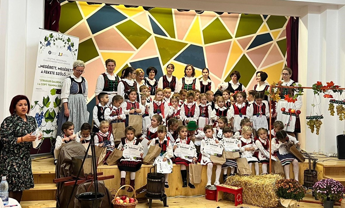 A versenyre, amint azt a címe is sugallja, szüreti jellegű gyermekversekkel, népdalokkal és népi gyermekjátékokkal lehetett benevezni. Nagy örömünkre szolgált, hogy a megyéből 54 kisóvodás jelentkezett. A zsűri tagjai – Kovács Júlia óvodákért felelős tanfelügyelő, Bende Szende marosszentgyörgyi óvónő, a Bekecs néptáncegyüttes volt tagja és Sárosi Tímea, az Arlecchino óvoda óvodapedagógusa – az első díjat a szavaló gyerekek közül a marosszentkirályi Veres Petrának, a népdalosok közül Fikó Brigittának, a marosvásárhelyi 6-os napközi kisóvodásának, míg a népi gyermekjáték első díját a Koronkából érkező Bogyó és Babóca csapatnak ítélte oda. Az önkormányzat támogatásával minden részt vevő óvodás játékos foglalkoztatóból, színes ceruzából, temperából álló jutalomcsomagot kapott ajándékba.