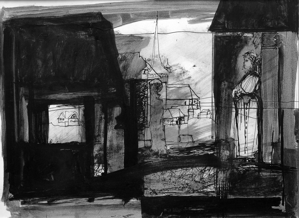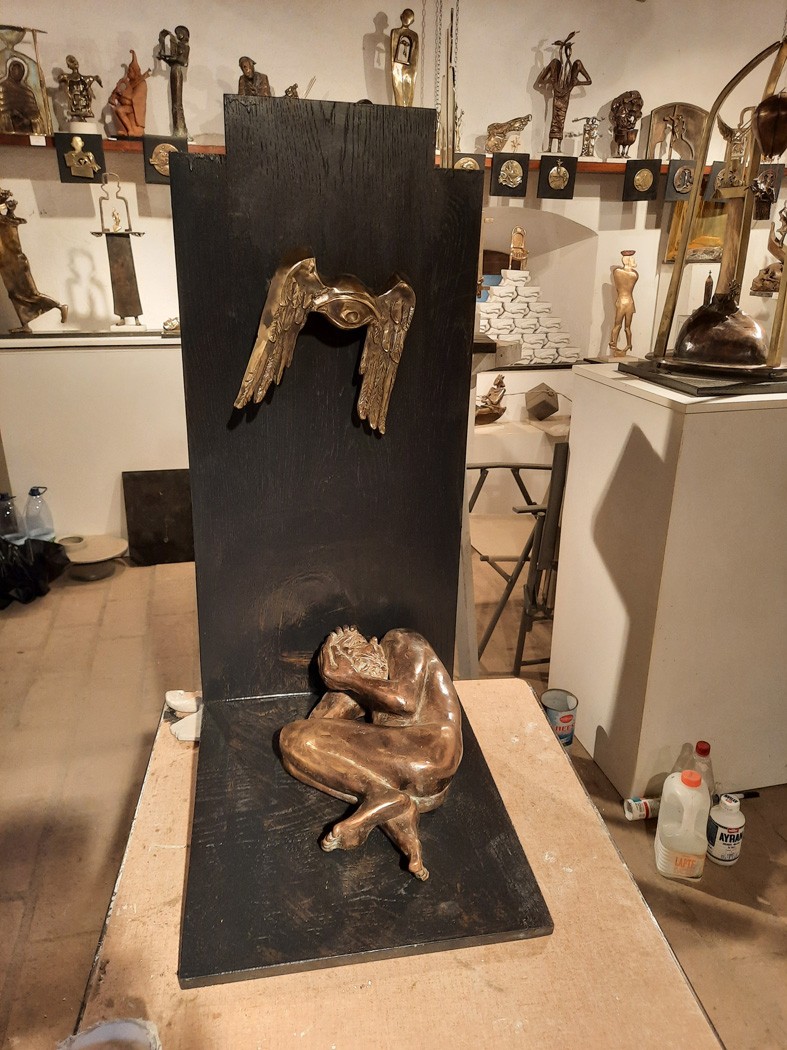 Oltalom… Új szoborkompozíció készül Gyarmathy János marosvásárhelyi műtermében Kádár Tibor kalotaszegi grafikája