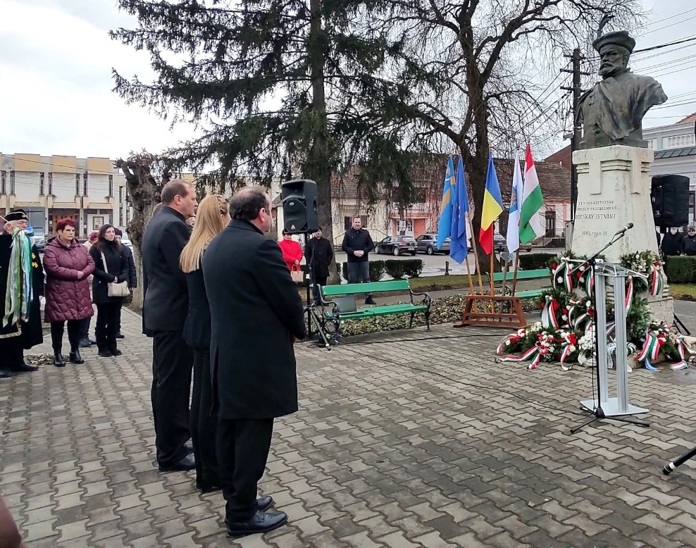 „Amikor itt, Bocskai István szobránál fejet hajtunk, nem csupán a múlt egy dicső fejezetét lapozzuk fel, hanem egy olyan örökséget idézünk meg, amely ma is iránytűként szolgál mindannyiunk számára” – hangoztatta a szobornál tartott beszédében Magyarország Csíkszeredai Főkonzulátusa képviseletében dr. Balogh András Márton konzul, aki az egykori fejedelmet országalapítóként méltatta, hiszen szilárd alapokat rakott le, amelyre később Erdély aranykorát építette fel Bethlen Gábor és I. Rákóczi György. „Ma a mi feladatunk csupán annyi, hogy ne mulasszuk el a lehetőségeket, ne engedjük el egymás kezét, ne feledjük: a nemzet jövője nem magától épül, hanem a mindennapi munkából, a közös felelősségből, a hitből és a kitartásból” – figyelmeztetett a diplomata.