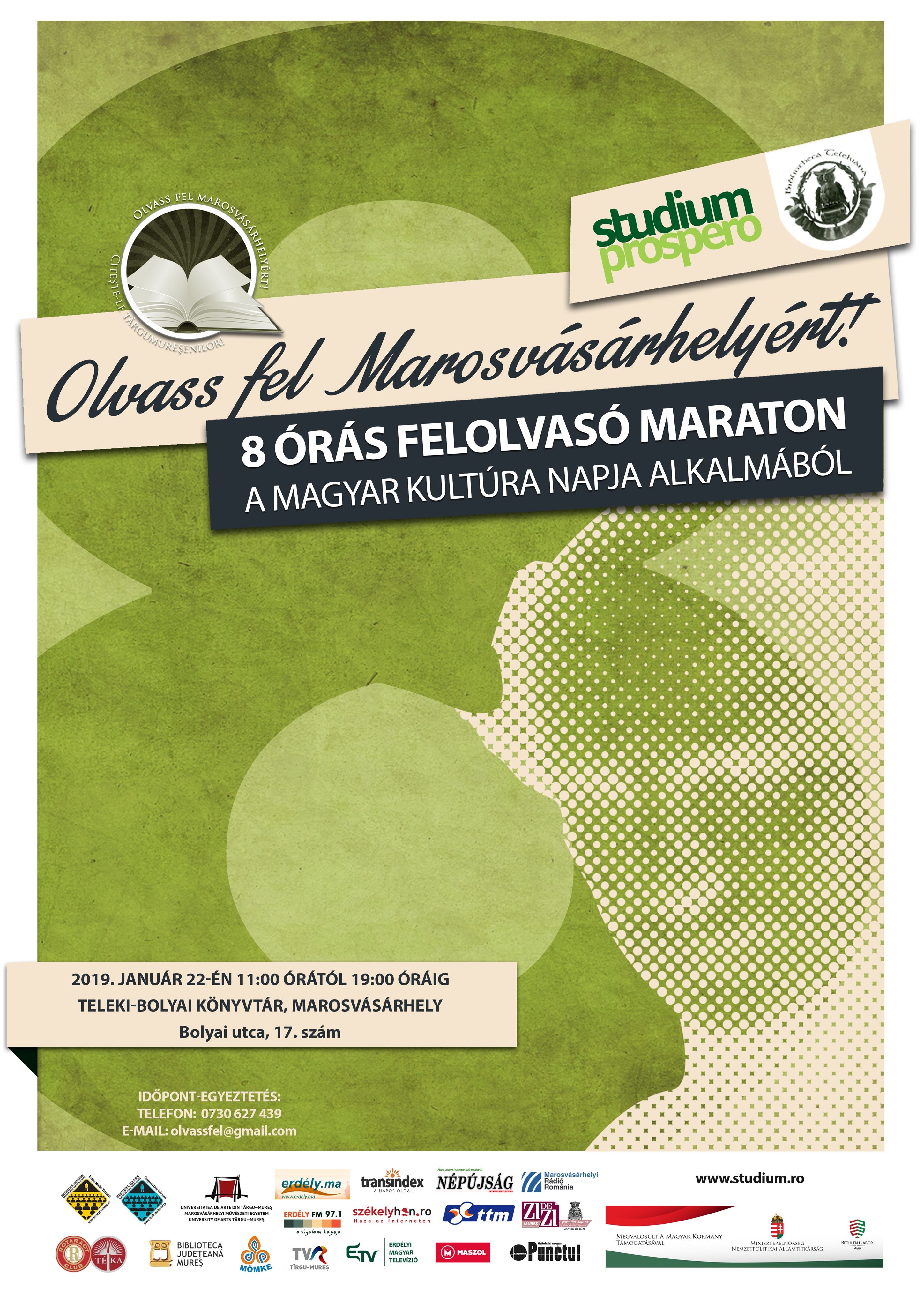 Idén is felolvasómaratonnal ünnepli Marosvásárhely január 15-én a román kultúra, illetve január 22-én a magyar kultúra napját. A két rendezvény közötti héten további kulturális rendezvényekre, tematikus előadásokra várják az érdeklődőket a szervezők, a Studium-Prospero Alapítvány és partnerei. Az események magyar, illetve román nyelven zajlanak majd.