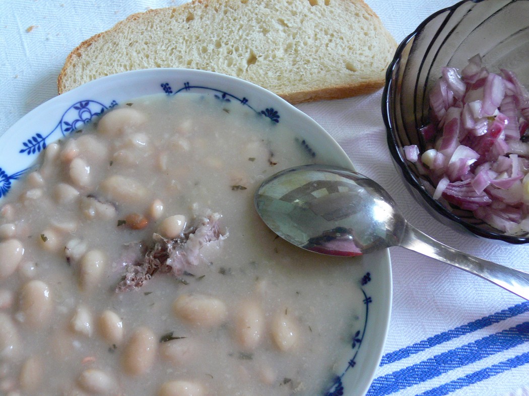 Hozzávalók 8-10 személyre: 1 füstölt disznólábszár, 1 nem füstölt húsos csont, kb. 80 dkg száraz szemes paszuly, 1 hagyma, 3 sárgarépa, 1 petrezselyemgyökér, 1 darabka zeller, 2 evőkanál liszt, 2-3 evőkanál zsiradék, 1 teáskanál pirospaprika, só, ecet;