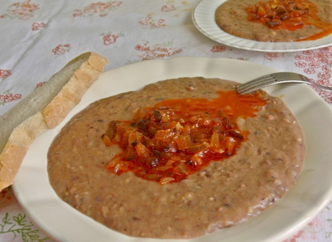 Elkészítése: A babot beáztatjuk, és hideg vízben odatéve, megfőzzük. Ha nem volt beáztatva, kuktában elég gyorsan megfőzhetjük. Ha elkészült, leszűrjük és ledaráljuk, vagy botmixerrel pépesítjük, esetleg robotgépben turmixoljuk. A pépet lábosba tesszük, és állandóan kevergetve, tejjel és vízzel tetszés szerinti arányban mártássűrűségűre hígítjuk. Közben sózzuk-borsozzuk, végül jól kiforraljuk. A szalonnát apróra kockázzuk, zsírját kiolvasztjuk, majd rádobjuk az apróra vágott hagymát, és üvegesre dinszteljük. Rászórunk 1 teáskanál pirospaprikát, gyorsan elkeverjük, és felöntjük kb. 1 dl vízzel. Néhány percig főni hagyjuk, amíg majdnem zsírjára sül, de azért hagyunk még „levet” is neki, sózzuk, borsozzuk, majd a kitálalt paszuly tetejére halmozzuk.