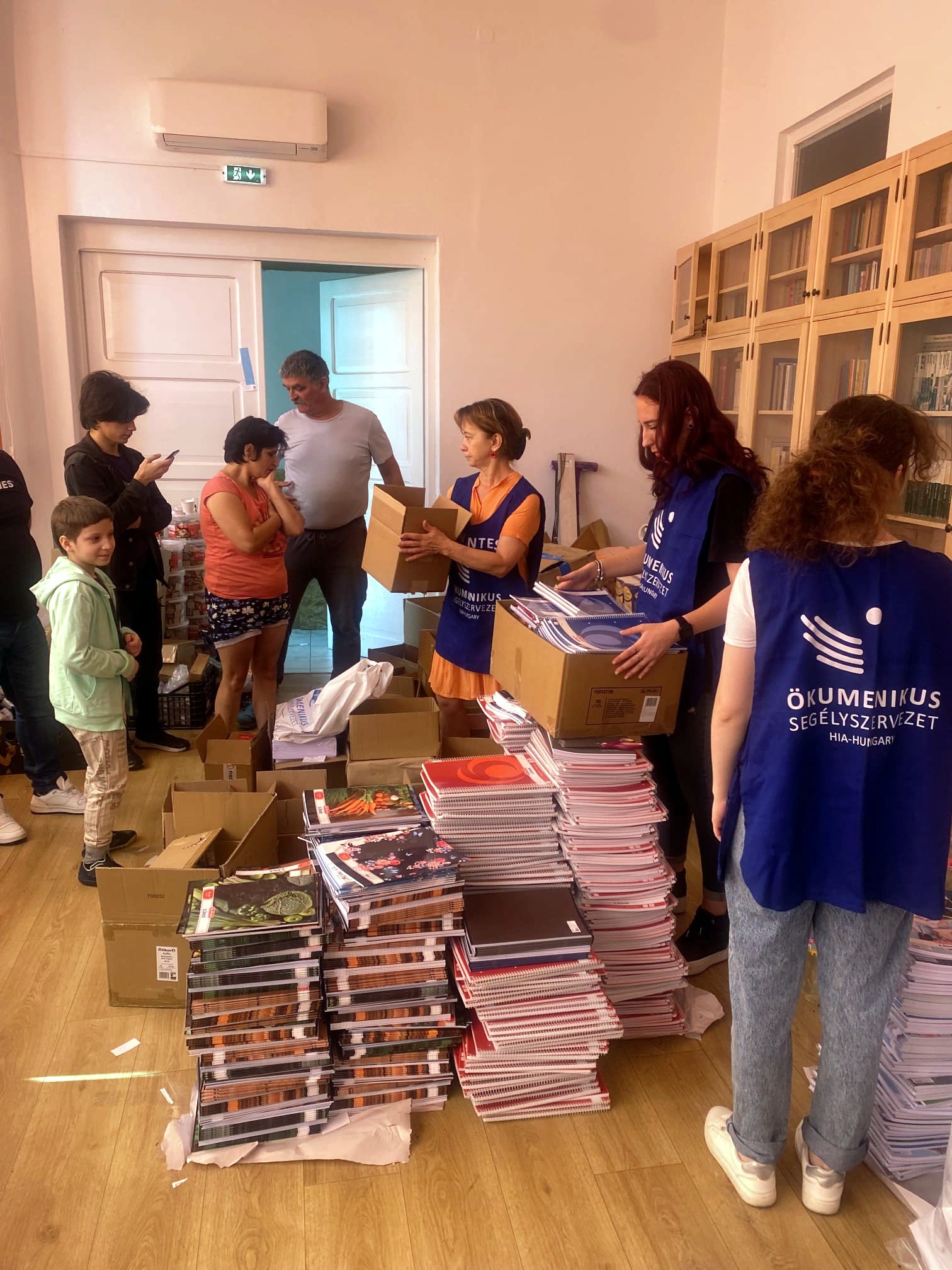 Megérkeztek a Magyar Ökumenikus Segélyszervezet tanszeradományai Marosvásárhelyre a Lazarenum Alapítványhoz, amely a napokban több mint kétszáz rászoruló gyerekhez juttatja el az iskolakezdéshez szükséges csomagokat.