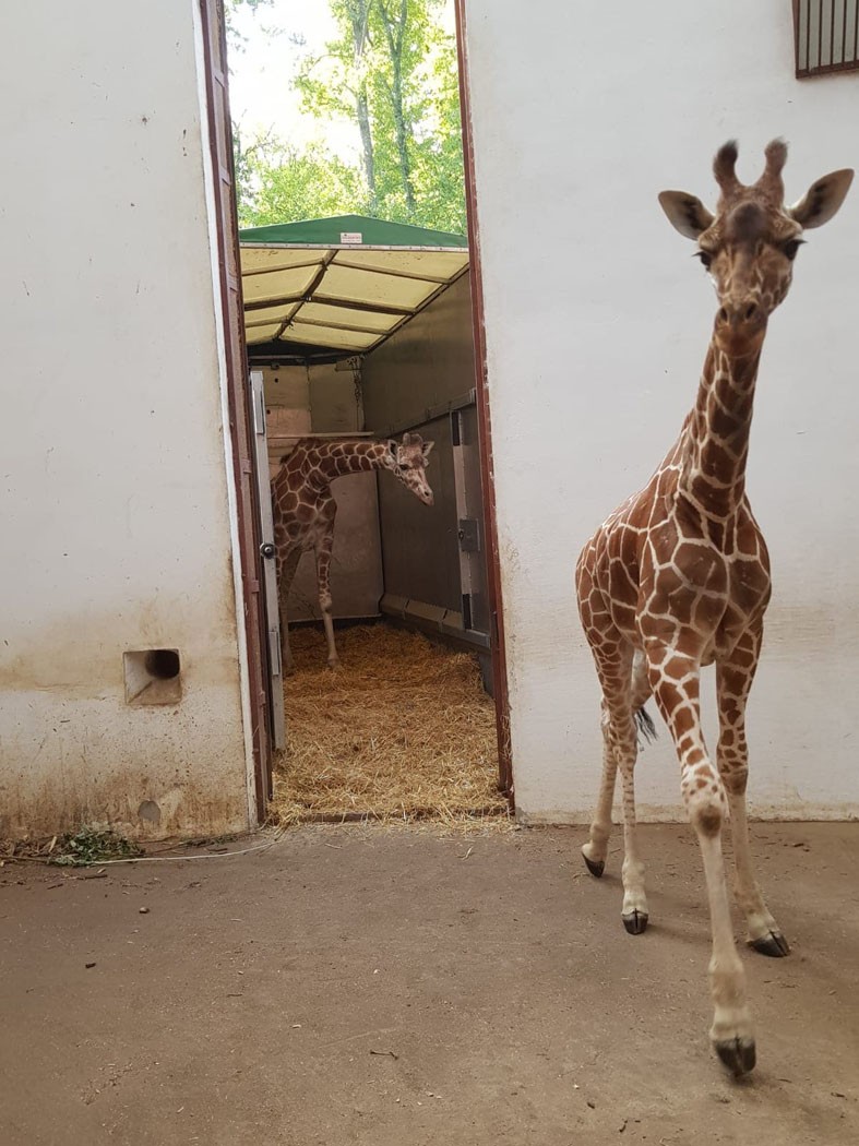 Csütörtökre virradó éjjel, több mint 2300 km-es út után, öt európai ország fővárosa – Koppenhága, Berlin, Prága, Pozsony és Budapest – érintésével, a Kecskemét–Szeged–Arad–Déva–Torda útvonalon Marosvásárhelyre érkezett két fiatal – egyik két-, a másik hároméves – recészsiráf-tehén, Pumpkin (Sütőtök) és Kamala.