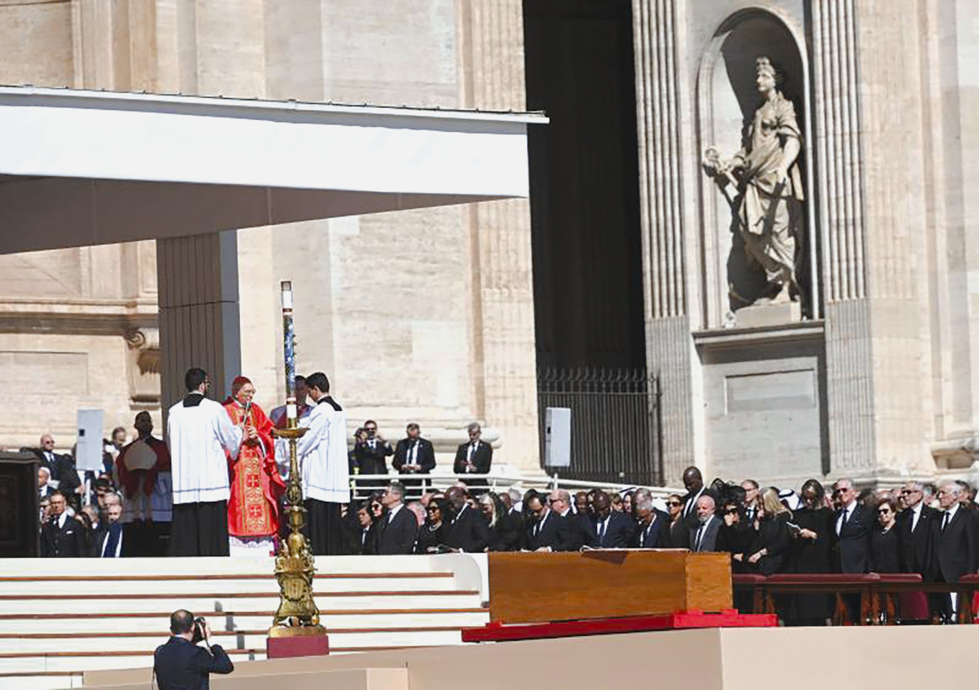 Szombaton tíz órakor kezdődött Ferenc pápa gyászszertartása a vatikáni Szent Péter-bazilika előtti téren, amelyen mintegy kétszázezer hívő volt jelen. A gyászmisét Giovanni Battista Re bíboros, a bíborosi kollégium dékánja vezette. A szertartáson 980-an koncelebráltak, bíborosok, püspökök és papok, továbbá 200 áldoztató teljesített szolgálatot, és több mint négyezer pap volt jelen. A gyászmisén 166 ország delegációja vett részt.