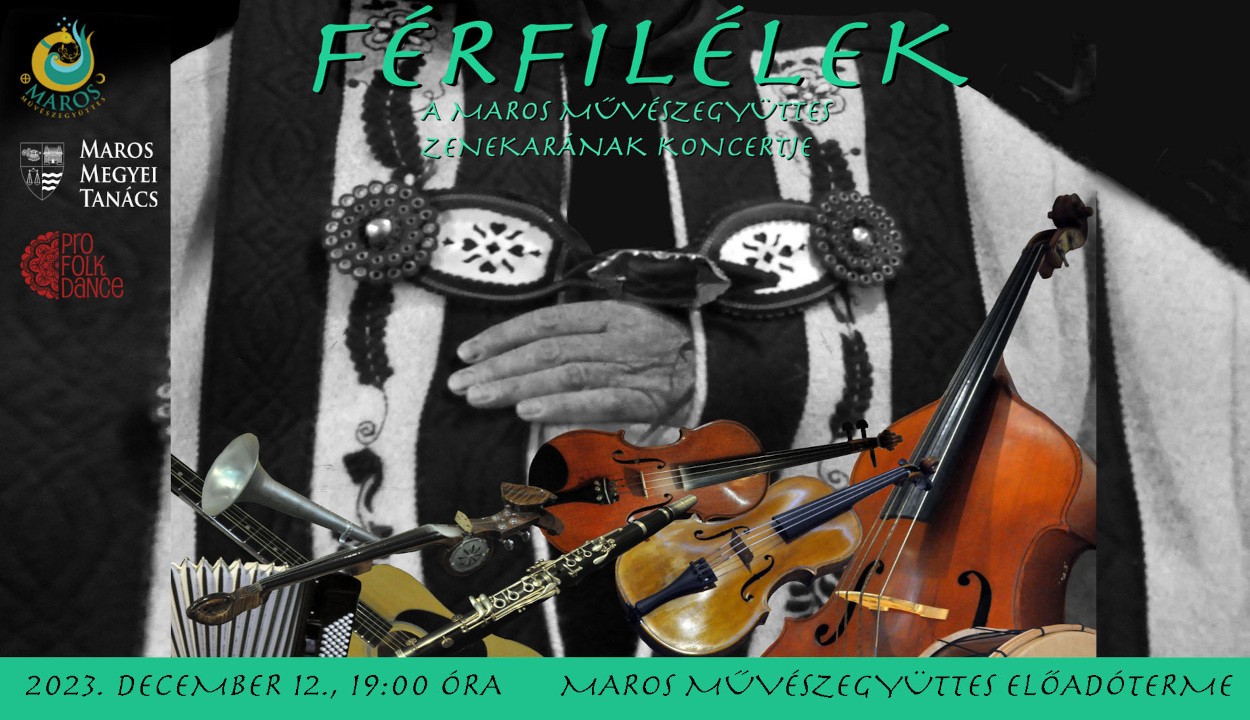 December 12-én 19 órától a Maros Művészegyüttes zenekara rendhagyó koncerttel lép fel a művészegyüttes előadótermében. A Férfilélek azért különleges, mert csak férfi előadók, zenészek, táncosok vesznek részt benne. A férfiérzés, -érzelem, -virtus megnyilvánulásait szeretnék bemutatni különböző élethelyzetekben. A műsor anyagát erdélyi és magyarországi tájegységek hagyományos kultúrájának gyöngyszemeiből válogatták. Muzsikál az együttes zenekara: Moldován-Horváth István, Ficzus László – hegedű, Gyárfás Róbert – nagybőgő, harmonika, Kisfaludi János – brácsa, cimbalom, Bakos Barna-Attila – brácsa, gitár. Meghívott előadó Mátéfi Csaba Székelykeresztúrról. Közreműködnek a Maros Művészegyüttes férfi táncosai: Füzesi Nándor Albert, Kovács Szabolcs és Bíró Szabolcs. Előzetes jegyfoglalás a 0757-059-594-es telefonszámon.