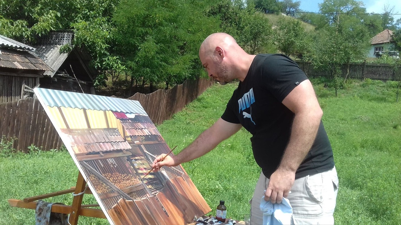 Posta Máté Budapestről érkezett Mezőmadarasra. – Már a hír, hogy tábort szerveznek itt, nagyon inspiráló volt, ugyanis az összmagyarságot képviselők találkozóhelyeként értékeltem. Ez azért jó, mert itt különböző, ugyanazon nemzethez tartozó embereket ismerhetünk meg, akikkel a távolságok miatt sem találkozhatnánk. Mi Basa Anikóval és Ásztai Csabával érkeztünk. Mindenki másképp dolgozik, más-más stílusban. Látványképeket készítettem. Nagyon inspiráló a falusi ház, a gazdaság, ahol érdekes struktúrákat fedeztem fel, ami megfogott, és ezt próbáltam visszaadni – mondta.
