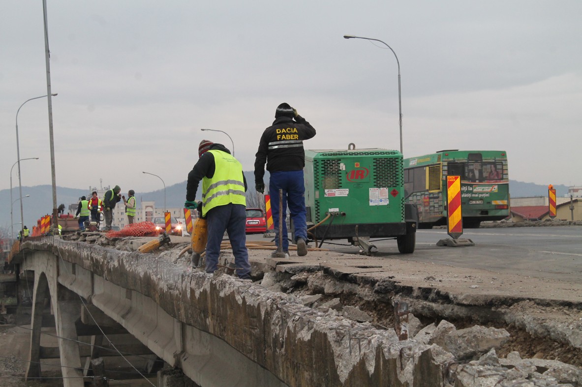 – A munkálatok egymástól függetlenül zajlanak, de a tartóoszlopok megerősítő burkolása nem zavarja a híd felszínén az építést. A híd felújításához a szállítási minisztériumi engedélyeken és láttamozásokon kívül a CFR központi engedélye is elengedhetetlen volt, mivel a híd a vasúti sínek fölött halad át. A tartóoszlopok megerősítését már tavaly elkezdték volna, de a feladatfüzetet az országos vasútigazgatóság bizottsága is kellett láttamozza; a mindkét hatóság által láttamozott építkezési engedélyre sokat kellett várni, és csak tavaly októberben sikerült megszerezni.