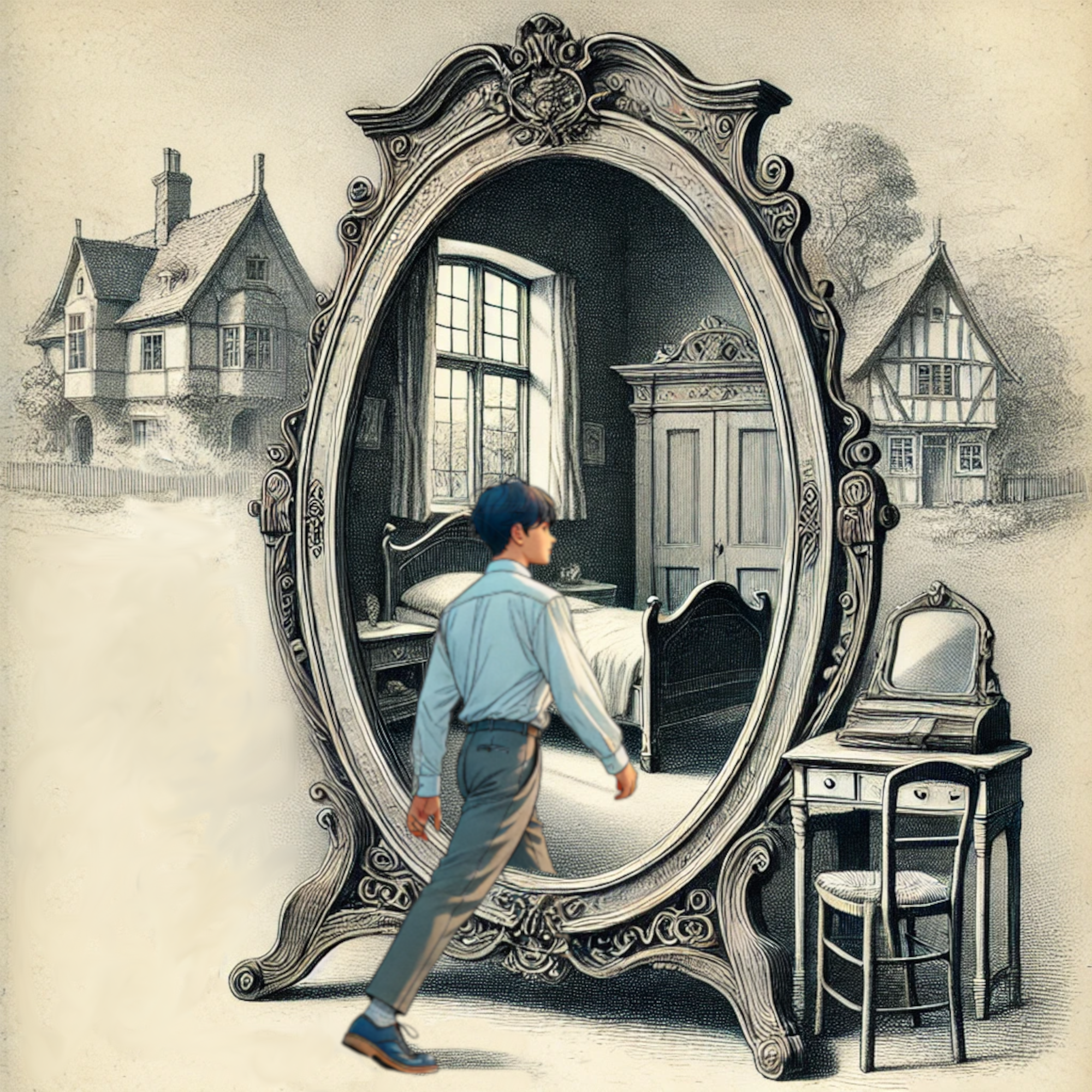 Tóth László írásának főhőse Pityu, aki az új lakásukban, egy sokat megélt régi házban szembetalálja magát a rejtélyes tükörrel. Ifjú titánunk túl közel kerül a bútorhoz, átlép rajta, s ez a mozdulat kalandok sorozatát indítja el. Kapcsolatba lép a manókkal, s egyből egy karitatív feladat is vár rá, a beteg manókislány eljuttatása a gyógyító tengerhez. Természetesen ez nem megy könnyen, megpróbáltatás megpróbáltatást követ, hogy mi is lesz a vége, ezt nem árulhatom el a naiv Olvasónak. Hősünk nem bíz semmit a véletlenre, alternatív tudományos ismereteit Párizsban gyarapítja, s végül a bimbózó szerelem is élete részévé válik.