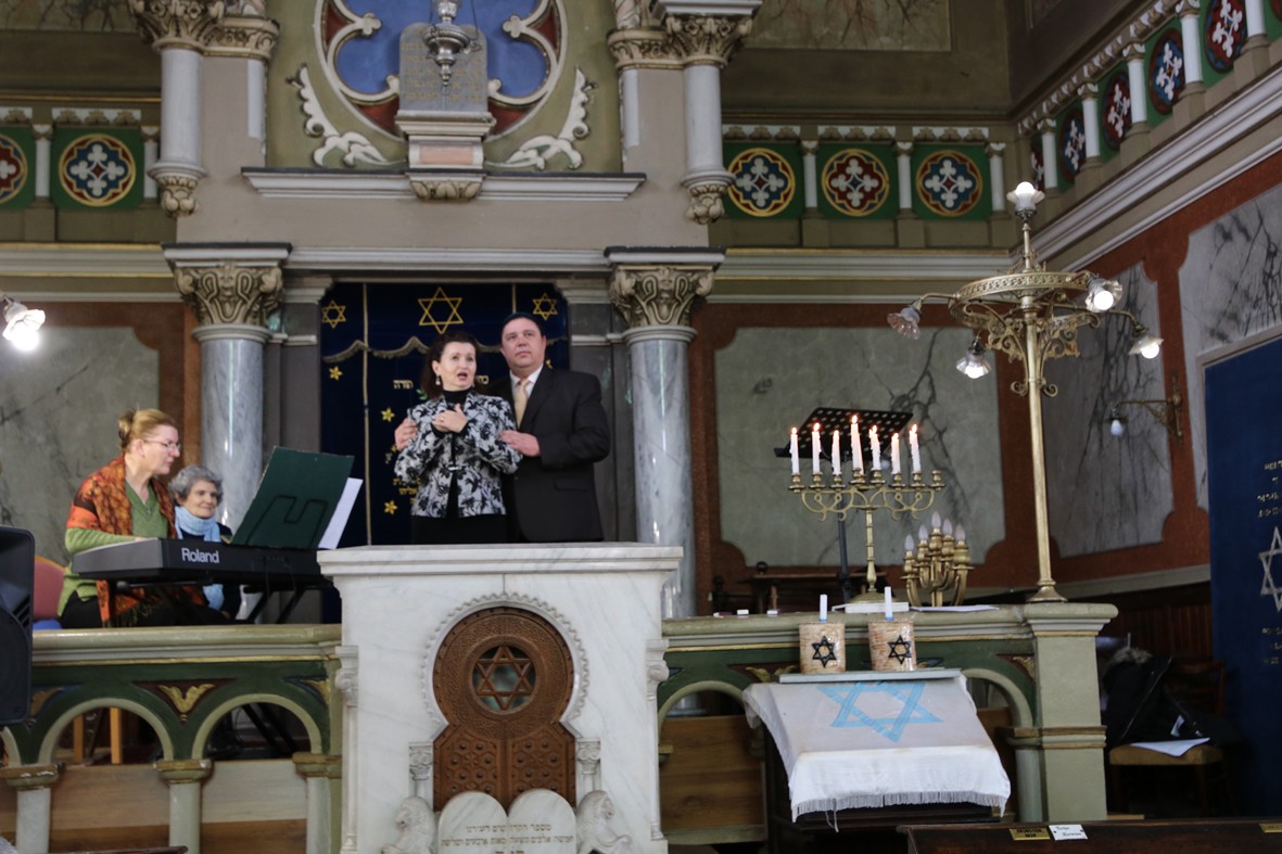 A történelmi visszapillantó és emlékezés után a muzsika vette át a szót. A zenei világirodalom ismert darabjai és zsidó zenei dallamok csendültek fel. Az ünneplők örömére Madaras Ildikó és Marian Someşan román, magyar, német és héber nyelven énekelt, zongorán kísért Maria-Antonia Someşan és Szőnyi Márta.