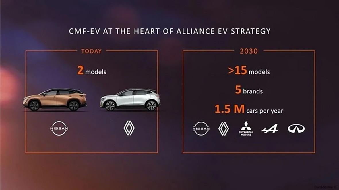 Továbbá a tervekben egy elektromos autók számára tervezett platform kifejlesztése is szerepel, a CMF-EV nevű platformé, amely az aktuális Nissan Ariya és a Renault Megane E-tech Electric alapjául is szolgál. A CMF-EV a tervek szerint további 15 elektromos modell alapja lesz 2030-ig. 2024-től pedig elindulhat egy másik platform, a CMF-BEV gyártása is. Utóbbit többek között a Renault 5-ben és a Nissan Micra utódjában tervezik használni. A CMF-BEV platformot szánják a legfontosabb európai elektromos platformnak, amelyre éves szinten körülbelül 250 ezer autót terveznek építeni.