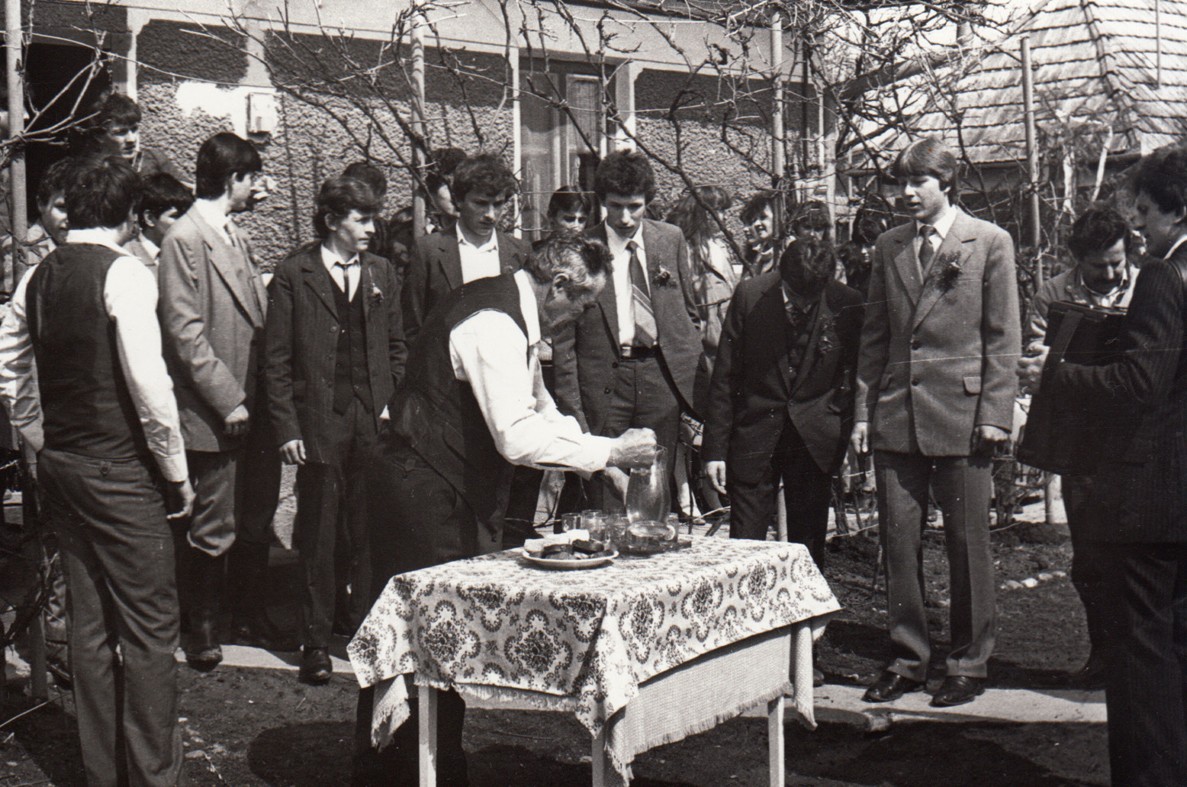 Nem szólt, nem szólhatott a nyolcvankilences tudósítás arról, hogy a szentlászlói idős férfiak, húszan-huszonöten, unitárius papjukkal, Kiss Mihállyal nagyszombaton este kimentek a határra, az első búzavetéshez. A tiszteletes úr imájában áldást kért a vetésre, a határra, az emberek munkájára. Hívei levett sapkával, magukba roskadva hallgatták. Utána elénekelték a közismert zsoltárt: „Tebenned bíztunk eleitől fogva/ Uram, téged tartottunk hajlékunknak”. Ennyi maradt az egykori határkerülésből. No, és megvolt a botolásos büntetés, a zsoldosztás is. A határról bejőve királyt, ítélőbírót, csapómestert választottak. Sorra mindenkinek kiosztották a zsoldját: öt, tíz, tizenöt, húsz vagy huszonöt botütést. Végigbotoltak mindenkit. Folyt az öregek játéka a templomkapu előtt, mégis hiányérzetem támadt. Középkorú férfi és fiatal, legény alig volt közöttük. Ketten voltak tizennégy évesek, akiket botolással fel lehetett avatni. Szentlászló kicsi település, tizenkilenc éves katonalegény 1988-ban egy sem volt a faluban. Azért kellett a tizenhét éves Kálmán Csaba és Gyárfás István, valamint a huszonhárom éves Papp István legyen az öntözést szervező vőfély. Ők zenekart alakítottak, együtt járnak zenélni, mondták. A húsvéthétfői öntözésben is ezt a kettősséget figyelhettem meg. Végig érződött, hogy az idősebbek kiöregedtek az öntözésből, mégis ragaszkodnak hozzá. Éltetni szeretnék a megőrzött, de kiüresedett szokásformákat. Ezzel ellentétben a fiatalok beleélték magukat a vőfélyi szerepkörbe. Csaba hegedült, István mondta a beköszöntő verset: