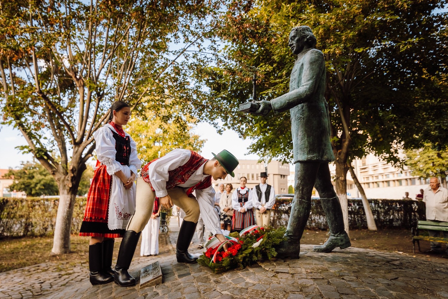 A drámanapi ünnep 17.30 órakor kezdődött Aranka Görgy szobránál, ahol Varga Balázs színművész olvasta fel Berekméri Katalinnak, a Tompa Miklós Társulat művészeti igazgatójának az alkalomból írott üzenetét, ezt követte a koszorúzás.