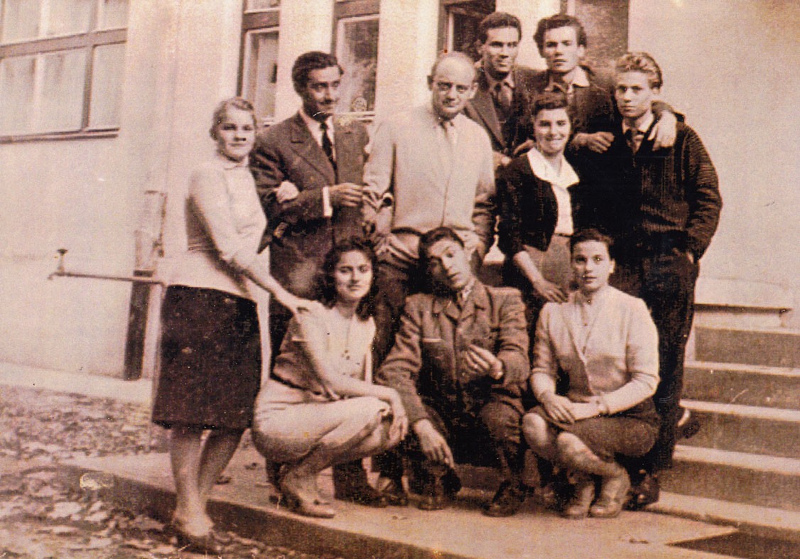 A mellékelt csoportkép az első év második felében készülhetett. Harag Györgyöt és Tarr Lászlót nyolc diák veszi közre az udvari kijárat lépcsői előtt: Biluska Annamária, Kocsis Antal és Nagy Réka az első sorban guggol, Tarr László oldalán Kiss Erzsébet, Harag György mellett Szász Zsuzsa áll, mögöttük három fiú: Darvas László, Visky Árpád, (Seprődi) Kiss Attila.