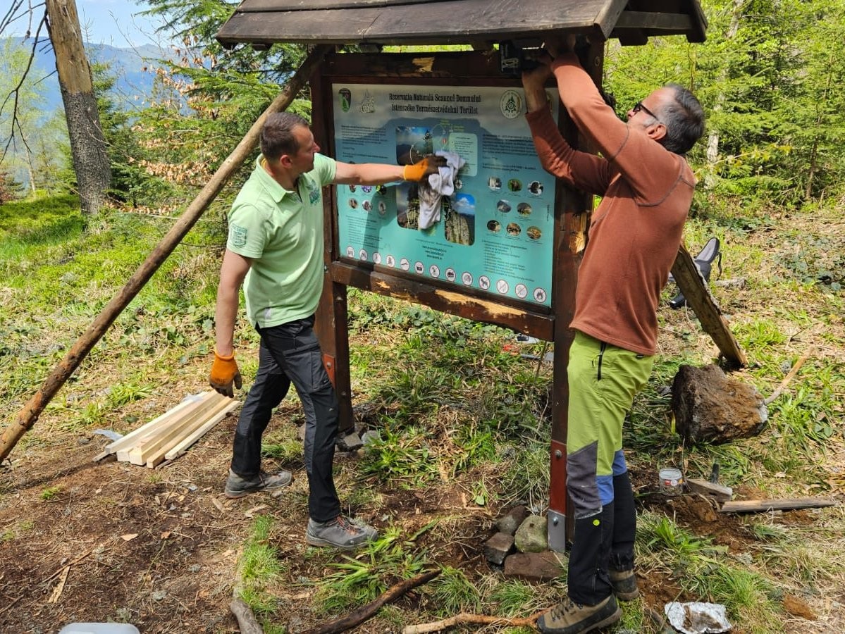 Amint egy korábbi lapszámban megírtuk, ismeretlen tettesek áprilisban megrongálták a Kelemen-havasokban levő Istenszéke természetvédelmi területen kihelyezett turisztikai információs táblákat. A turistaidényre készülve, a terület korábbi gondnokai helyreállították a táblákat.