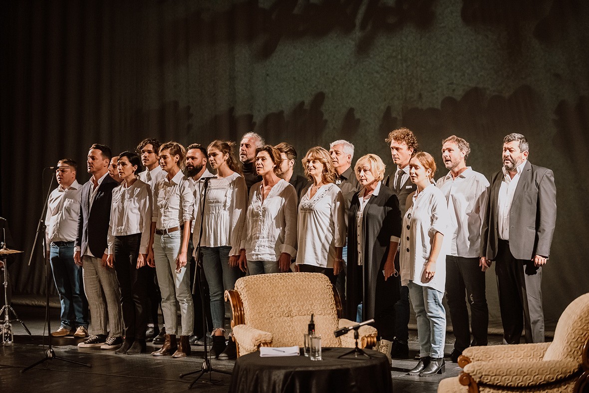 Bokor Barna, Gáspárik Attila, Markó Béla a színpadon Forrás: MNSZ Színészkórus Forrás: MNSZ