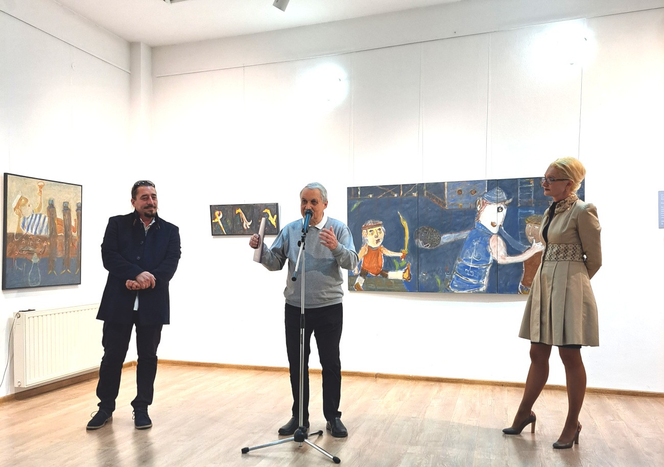 Csatlós Levente: A matróz és a pelikán Tárlatnyitó a Bernády Házban. A képen Csatlós Levente, Nagy Miklós Kund és Alina Csatlós