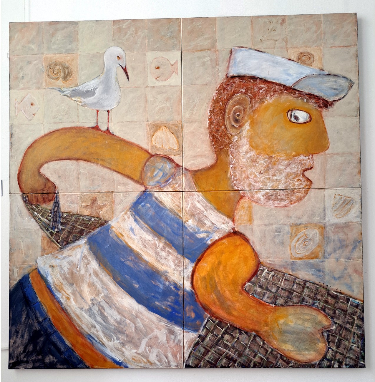 Hamar rájövünk, a marosvásárhelyi születésű művész, aki jó két évtizede lépett erre a pályára, a tenger szenvedélyes szerelmese, s ennek folytán a hajós népek, a Mediterráneum mondavilágának, Poszeidón és más görög istenségek, szirének, sellők legendáriumának jó ismerője. És hiszi, hogy az ezekhez kötődő jelképeket, közszájon forgó angyalos, sárkányos, matrózos, varázslatos történeteket a tárlatlátogatók is (fel)ismerik, folytatni tudják. A nyáron a Fekete-tenger partján, Konstancán rendezett kiállításán így is voltak vele a nézők, szép visszhangja volt a tárlatnak. A vásárhelyi fogadtatás is hasonlóan elismerő, vidám zsongás töltötte be a galériát a megnyitón. Nem bonyolítja el a kompozícióit, egyszerű és mégis színnel teljesen telített a vászon, akár akrillal fest, akár vegyes technikával. És miközben magával ragad a festőiségük, mindenik történetet indít el. A Csatlós Levente által megálmodottat és azt, amit magunkban, nézőkben kelt életre a látvány. A Dzsinn és az aranyhal, az Angyal, a Varázslatos pillanat, a Sárkányok öröme, a Mágikus ajándék, A matróz és a három grácia, A délibáb valóságos, A halász és a sirály, az Első nap a vizeken, Az esőkérő lányok, A fügeszedő, Az ajándékosztó és így tovább. Az utóbbi már bűvös tárgy, a kiállításon a Hét című objektsorozat is ilyen, különleges jelentéssel bíró művészi lelemény. Érdemes felfedezni.