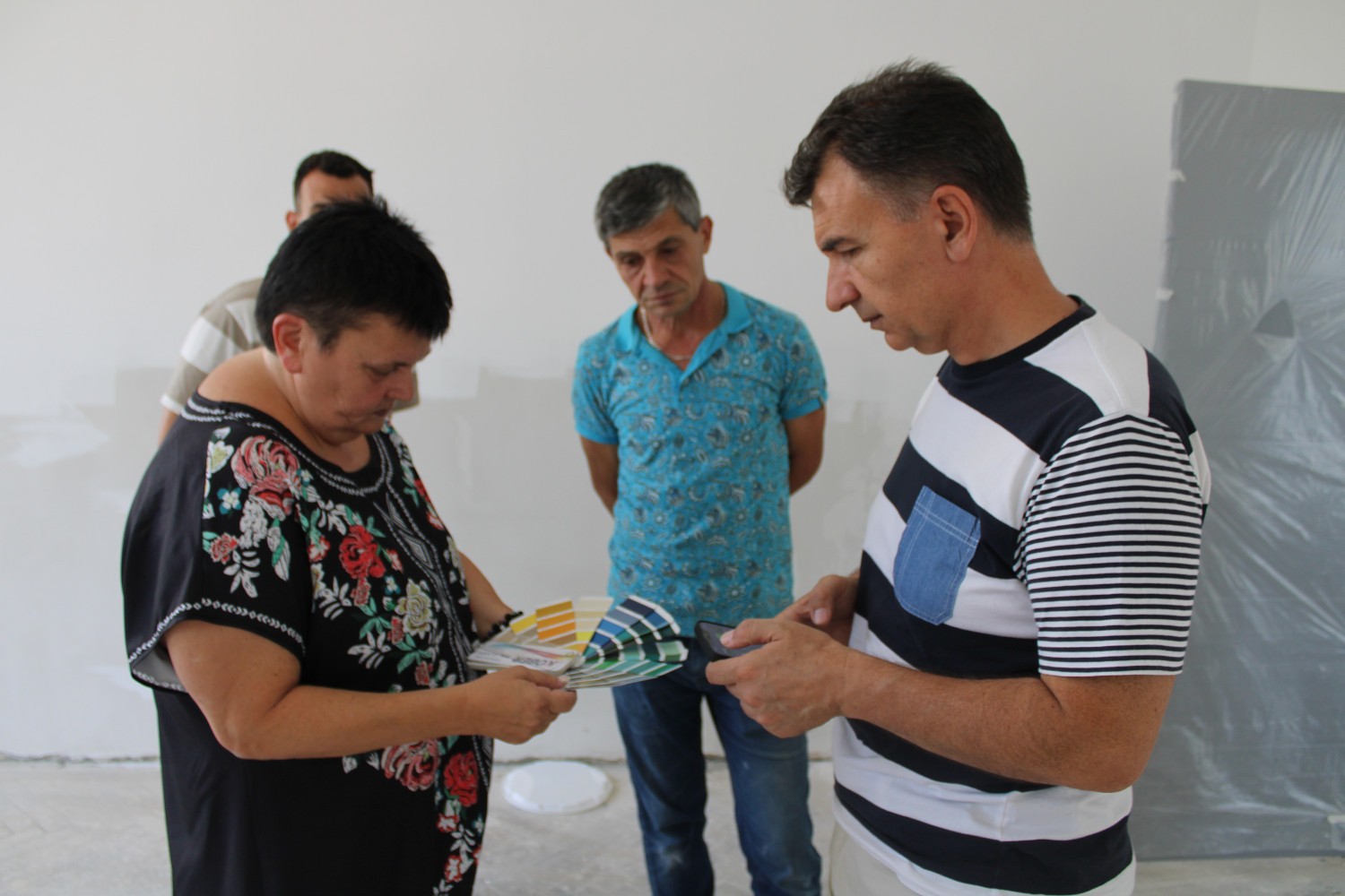 Az igazgatónő elégedett volt a munka minőségével, kisebb dolgokban egyeztettek a cégvezetővel, és kiválasztották a folyosó és az osztályok falának alsó része színét.