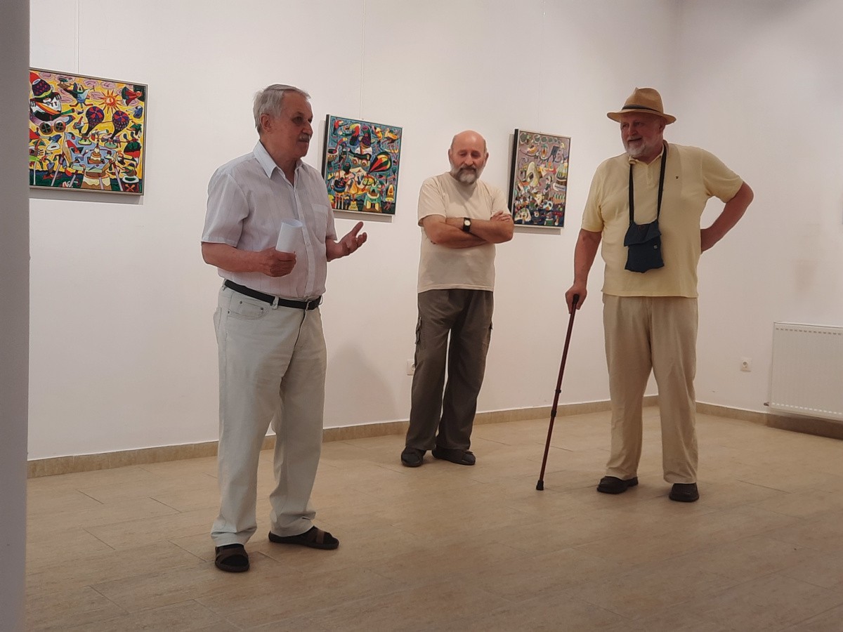 A szovátai kiállítás megnyitóján (jobbról): Borgó, Bocskay Vince szobrászművész és N.M.K.
