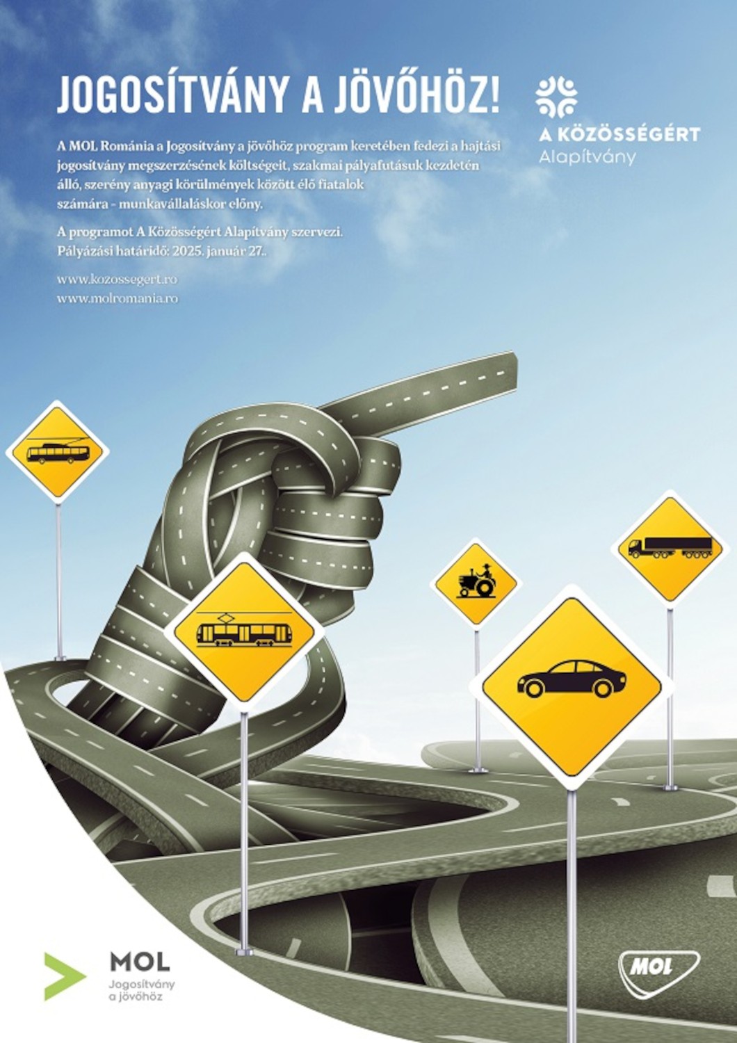 A program anyagi támogatást biztosít 18–25 év közötti, hátrányos helyzetű fiatalok számára, B, C, D kategóriájú (beleértve traktor, trolibusz és villamos) gépjárművezetői engedély tanulmányi költségeinek fedezéséhez, akik számára a hajtási engedély feltétel vagy előny a munkavállalásnál, vagy hasznos eszköz a munkaköri teendők ellátásában azoknak, akik már dolgoznak. D/DE kategóriás jogosítvány megszerzéséhez a korhatár minimum 21 év. A pályázatokat január 27-ig lehet benyújtani postán vagy elektronikus úton. A pályázati űrlap és egyéb szükséges információk A Közösségért Alapítvány internetes honlapján érhetők el – https://pentrucomunitate.ro/hu/jogositvany.