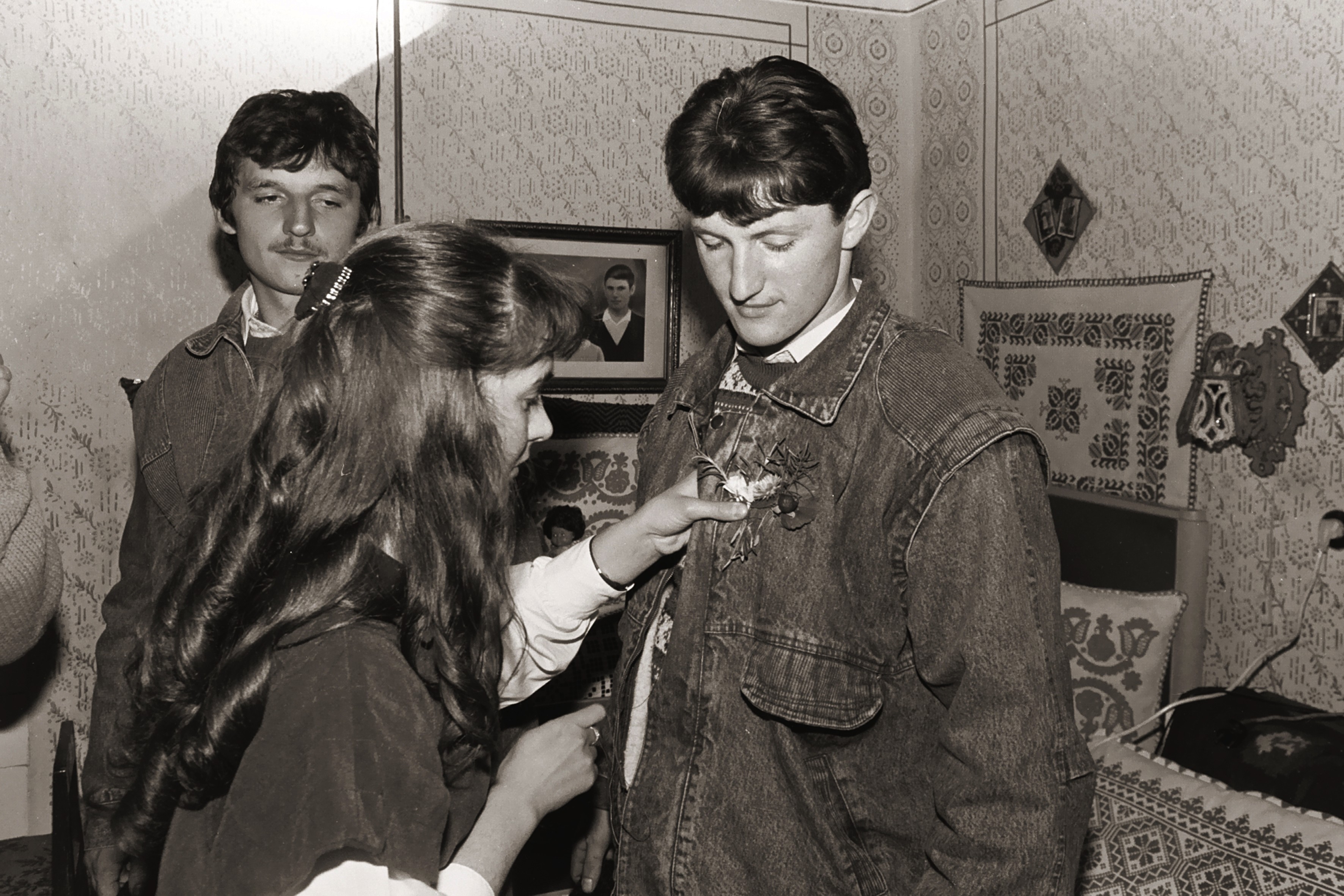 A felköszöntés, éneklés, pohárköszöntők sora után a házi leány a beköszönő és elköszönő legénynek virágbokrétát varr a kabátjára. Kemény a farmerdzseki anyaga, nehezen jár benne a tű, jó időbe telik, míg Erika felvarrja. De a legények várnak türelmesen. Dzsekijükön, sapkájukon már több virágbokréta díszeleg. Reggelre tele lesz mindkettő virágbokrétával. Összesen vagy harminc-harmincöt háznál, Istvánnál és leánynál ismétlődött meg ez az ünnepi közösségi, népi életszínjáték.