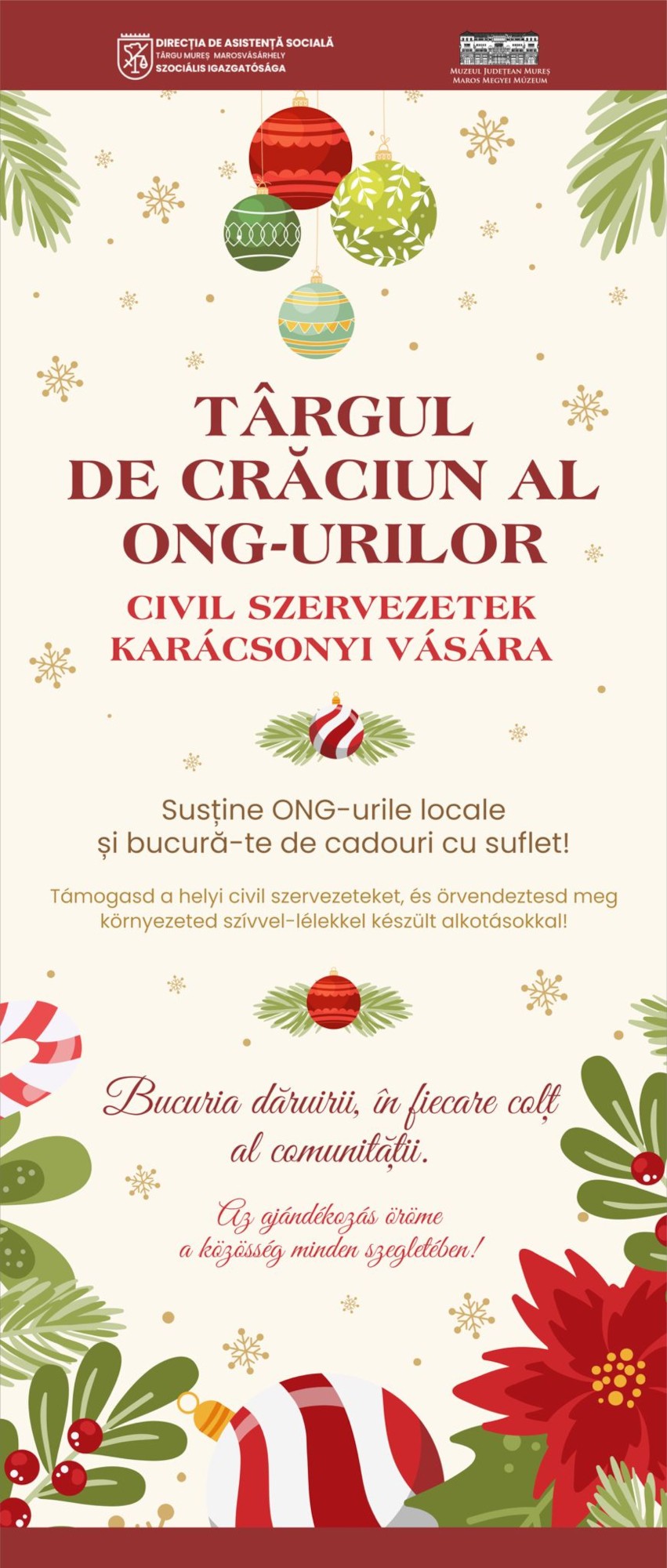 A közelgő téli ünnepek remek alkalmat kínálnak arra, hogy átéljük a karácsony varázslatos hangulatát, meglepjük szeretteinket ajándékokkal, és együtt ünnepeljünk a közösséggel. Az ünnepi hangulat jegyében a Marosvásárhelyi Szociális Igazgatóság és a Maros Megyei Múzeum egy különleges karácsonyi vásárt szervez december 10-én, kedden 10 és 20 óra között. A belépés ingyenes.