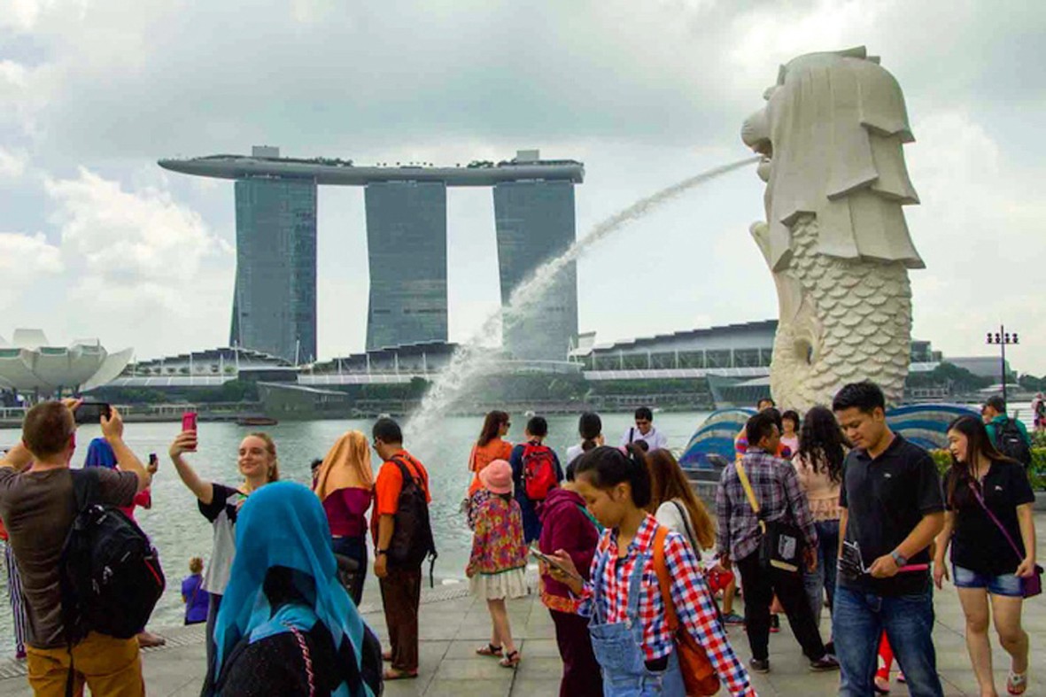A Valley Roadon jobbra fordultunk az Old Parlament épülete felé. A Szingapúr folyó elég forgalmas, sok a sétahajó, tele turistákkal. Szemben a Clarke Quay színes épületei, a háttérben pedig felhőkarcolók. Elhagytuk a Cavenaugh hidat, balra a városalapító Raffles szobra, illetve a Victoria színház és koncertterem. Kellemes, jó meleg van, de ha izzadunk is, legalább szép kék az ég. Elhagytuk a Fullerton hidakat, innen a Merlion, Szingapúr jelképe már csak egy kőhajításnyira található. Mint várható volt, nagy a volt tolongás, turista turista hátán, bábeli zaj, mintha egy modern népvándorlás közepébe csöppentünk volna. Mindenki le akarja fényképezni magát a 8,6 m magas Merlion-szobor előtt. Leültünk egyet pihenni, megittunk egy üdítőt és indultunk is tovább.